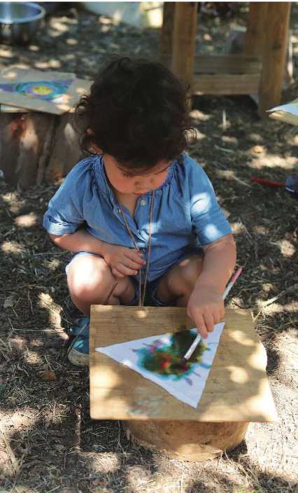 La pédagogie par la nature est née au Danemark dans les années 50. Elle est basée sur 7 points clés : un espace naturel sécurisé, les participants au cœur des pratiques, la répétition et le temps long, la prise de risque mesurée, le processus et non le résultat ; enfin, le jeu libre et la présence de l’adulte. Le programme varie selon les saisons, l’âge (entre 2 et 12 ans), les capacités des enfants et tout ce qu’offre à disposition l’environnement de l’immersion : grands jeux, chasse aux trésors, cuisine de boue, teintures végétales, bricolage, pistage et observation de la faune et de la flore, éveil sensoriel, vannerie sauvage, construction de cabanes, découverte de trésors naturels… d’autres animations à thème sont proposées à chaque ouverture de séance.