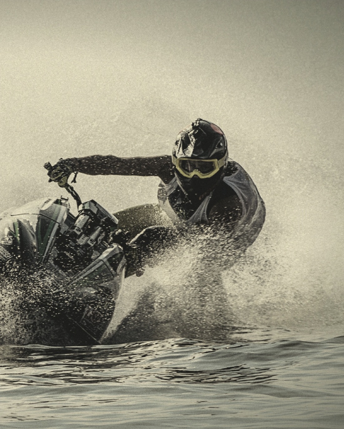 J’avais pas mal de sponsors et j’étais un habitué des circuits. J’ai pu rapidement obtenir un camion, une structure, des équipements… Je suis devenu champion de France en jet à bras, champion d’Europe et du monde en ski pro avant de réin- tégrer une team professionnelle, Rotax Sea-Doo. Si je participe essentiellement aux courses de vitesse en jet à selle, je m’essaie également aux rallyes raid comme en 2014 au Championnat du monde offshore à la Karujet en Guadeloupe. Dans cette spécialité qui s’étale sur 600 km en 5 jours, j’ai décroché le titre de champion du monde trois fois d’affilée en Russie, en Martinique et au Maroc en même temps que je remportais, 3 fois également, les 300 miles d’Havasu.